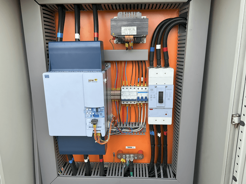 Serviços elétricos como a construção de eletrodutos, eletrocalhas, paineis seccionadores, passagem de cabos e interligações elétricas em geral.